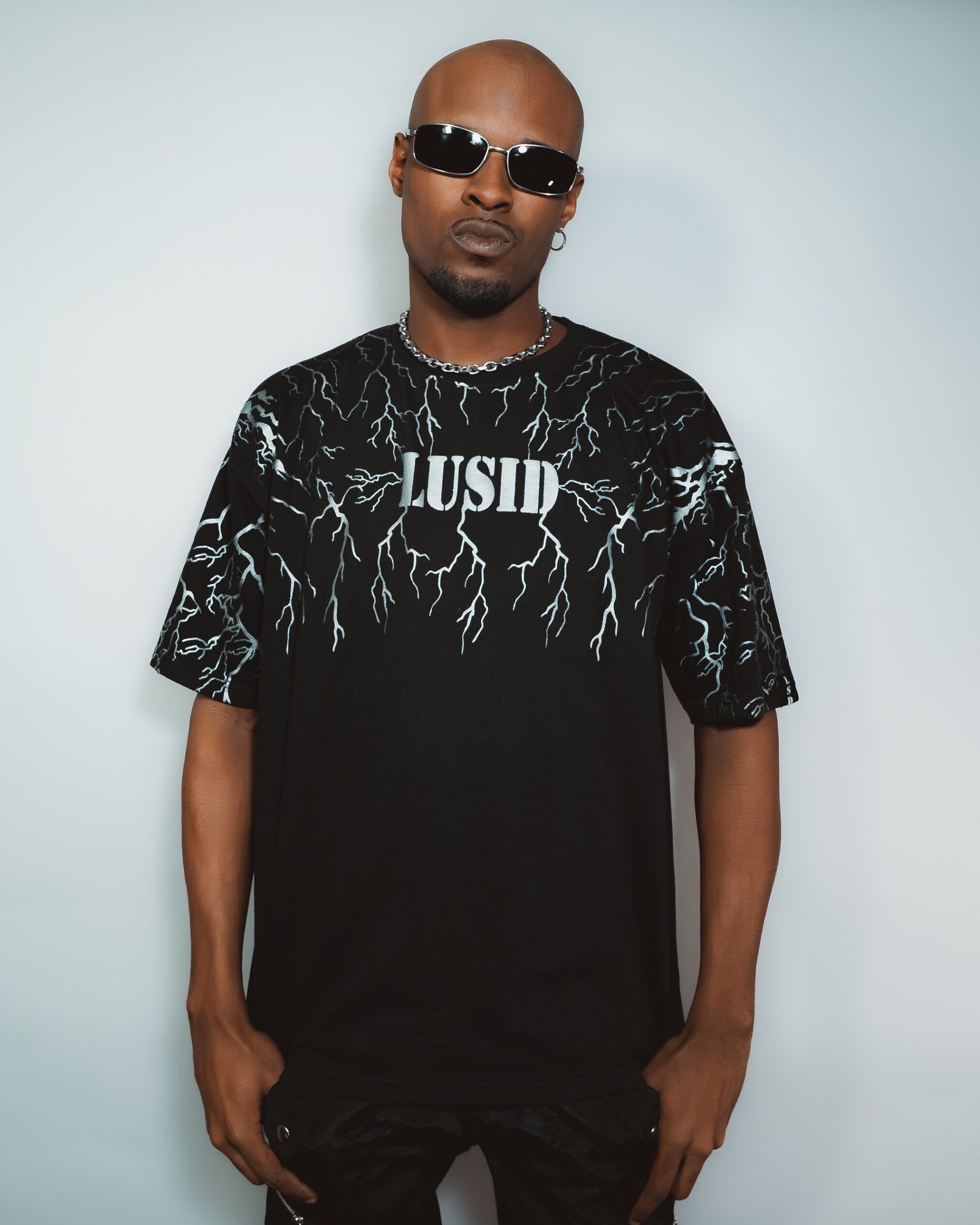 The Black LUSID Lightning Tee is built from 100% heavyweight organic cotton, engineered with a structured drape that holds its shape and commands presence. The oversized, drop-shoulder fit delivers a relaxed but intentional silhouette — heavy, grounded, and unapologetic. The lightning graphic is crafted in raised silicone print, giving the design a dimensional, rubberized texture that catches light without losing its edge. The LUSID logo sits centered on the chest — clean, bold, controlled — while the storm pattern extends across the sleeves and back for a full 360° statement. This isn’t loud. It’s controlled power. Details: • 100% heavyweight organic cotton • Oversized / drop shoulder fit • Raised silicone lightning graphic • Silicone LUSID chest logo • Structured drape with premium weight • Color: Deep Black Built for presence. Designed for movement. LUSID.